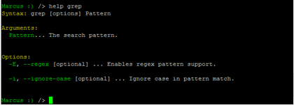 Eine detaillierte Hilfe zu einem Befehl erhalten Sie durch die Eingabe von help, gefolgt von dem Namen des Befehls: