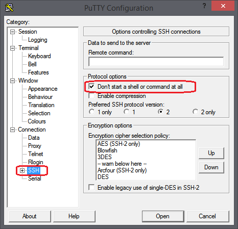 - Gehen Sie zu der Kategorie Connection -> SSH