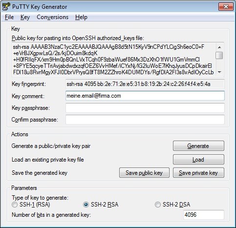 Die vermutlich einfachste Methode ist die Verwendungd es Programms PuTTYgen, welches Sie von folgender Adresse kostenfrei downloaden können: